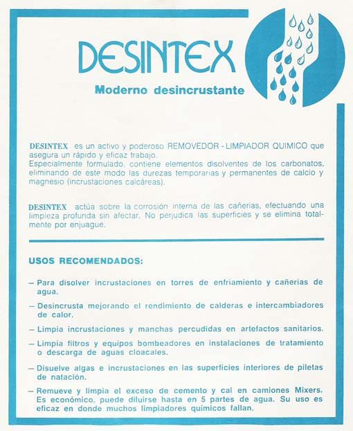 Desincrustantes: Diversos tipos de desincrustantes calcáreos, muy útiles para