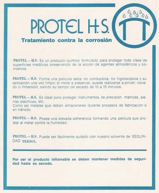 Protectores anticorrosivos: Es un producto químico formulado para proteger toda clase de superficies metálicas, preservando de la acción de agentes atmosféricos y corrosivos. Nuestros productos forman una película seca no conductora, no higroscópica, siendo su tiempo de secado de15 minutos. Ideal para proteger metales que deban almacenarse durante procesos de fabricación o que permanezcan mucho tiempo a la intemperie. Este producto puede ser fácilmente removido.